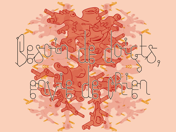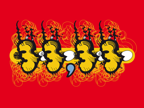 Mais son style fait aussi référence à celui d'Edward Fella, typographe aux lettres harmonieusement biscornues et enchevêtrées ainsi qu'à celui de Tadanori Yokoo, graphiste avant-gardiste des années 1960-1970 (exposé l'an dernier à la Fondation Cartier, ndlr). " Ils ont eu une vie d'avance..." conclut Jean-Jacques Tachdjian. "Je me souviens avoir longtemps rêvassé devant l'affiche des Jeux Olympiques de 1987 qu'avait réalisé Yokoo. Entre pop et univers psychédélique, ses travaux graphiques m'ont beaucoup marqué."