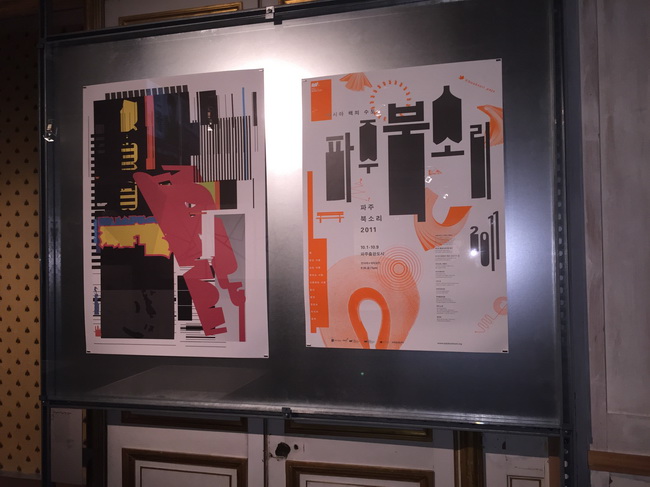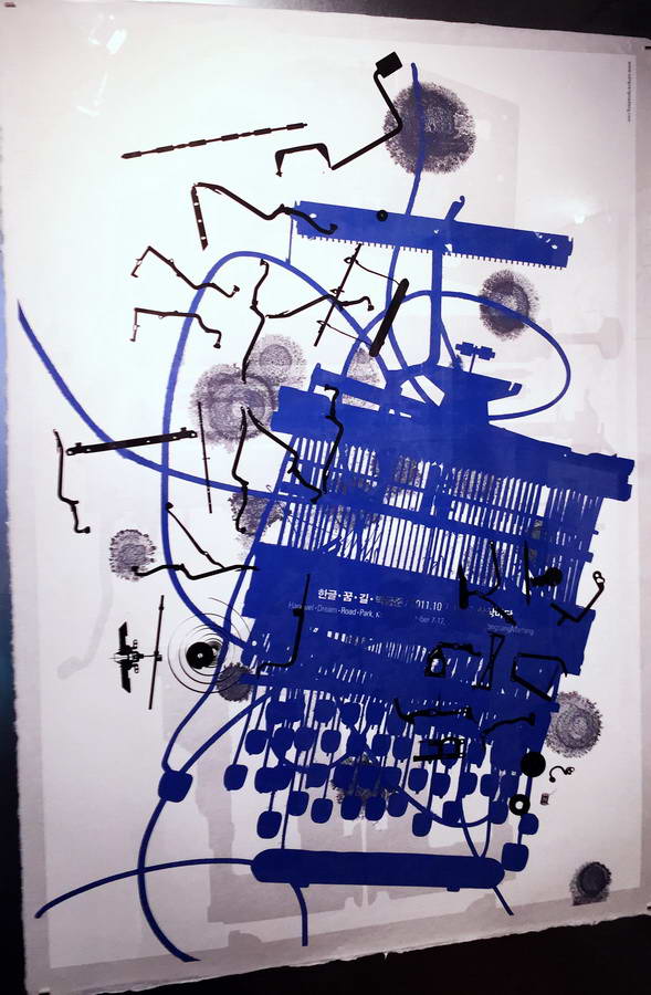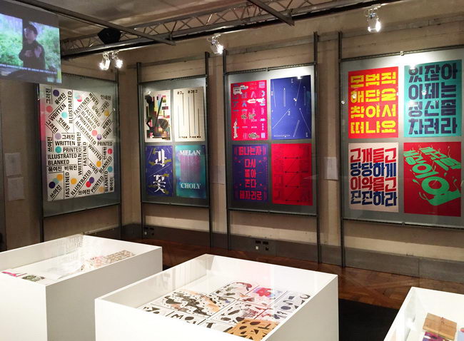 Le graphiste Ahn Sang-soo est le premier à s’être emparé du hangul dans les années 90. Il l’a modernisé en concevant plusieurs polices de caractères, ouvrant la voie à toute une nouvelle génération de designers graphiques. Lesquels, forts d’études à l’étranger, combinent souvent hangul et alphabet latin. Affiches et travaux d’édition montrés à l’étage des arts graphiques relèvent largement du secteur culturel, mécène habituel du graphisme partout dans le monde, et permettent à ces créateurs d’aborder les questions politiques et sociales dans leurs travaux personnels.