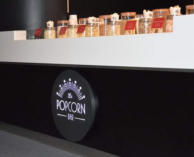 M l’Atelier traite ainsi des projets très concrets pour une diversité de clients : affiches événementielles ou vœux de début d’année 2014 pour la ville d’Issy-les-Moulineaux ; logo et travaux d’édition pour la société SCGE Construction ; l’identité visuelle du label de musique électronique Les Sales Mômes pour lesquels Hubert Munier conçoit la typo LSM ; identité de marque et signalétique des foodtrucks Afrikan Gourmet et Le camion qui Fume aussi bien que du Popcorn bar à la Cité du Cinéma. Et aussi l’identité visuelle de l’ESAMDesign, projet dont nous vous avions parlé l’automne dernier. Citons enfin l’espace socioculturel et médical Andrée Chedid à Issy-les-Moulineaux lui-aussi doté d’une police L’Autre dont la logique double (deux formes l’une sur l’autre) se retrouve dans la signalétique du lieu et même le logo, inspiré d’un signe d’origine nord-africaine en hommage aux racines égyptiennes d’Andrée Chedid.