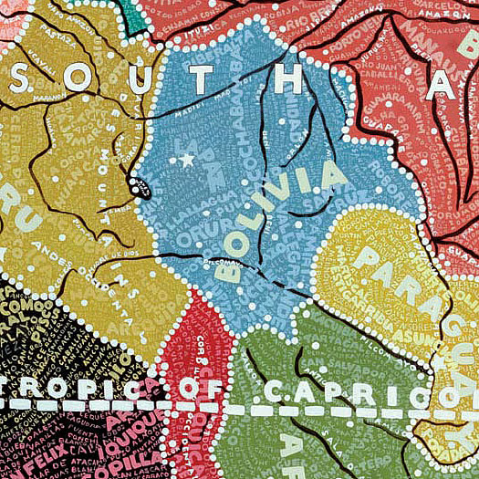 Ultra-créative, Paula Scher n'est pas seulement graphiste. Elle a également développé une écriture plastique toute personnelle qui s'exprime en particulier dans de grandes cartes du monde dessinées à la main puis reproduites en sérigraphie.