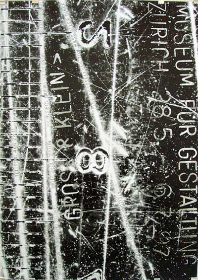 Ce qui ne l'empêche pas d'être aujourd'hui un graphiste reconnu, couvert de prix internationaux. Pourtant vous n'aurez pas trop l'occasion de voir ses productions sur les murs hors du canton de Zürich car ses commandes, jusqu'à présent, émanent exclusivement de sa ville de résidence. Raison supplémentaire pour courir à la galerie Anatome.