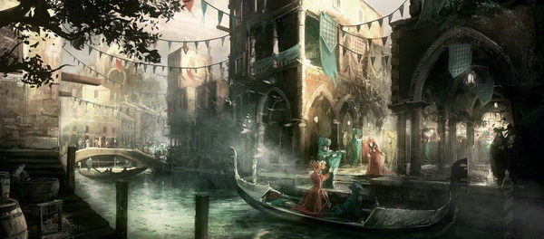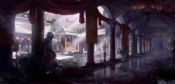 La série Assassin’s Creed fait partie des grands succès de l’édition de jeux vidéo. Développé par Ubisoft à Montréal, par une équipe largement issue de celle ayant développé Prince of Persia, le premier Assassin’s Creed est sorti en novembre 2007. On y découvre, à travers les souvenirs « génétiques » de son descendant, les aventures d’Altaïr, membre d’une secte d’assassins professionnels opérant au XIIème siècle dans les villes du Moyen-Orient. Salué pour l’originalité de son univers, la richesse de son graphisme et pour ses scènes d’action sur les toits des villes, le jeu est vite un succès mondial : une « franchise » est née ! Suit Assassin’s Creed 2 en novembre 2009 dans la droite ligne du premier, mais où le joueur incarne un autre assassin, Ezio, dans les villes de la Renaissance italienne au XVème siècle. Les deux versions du jeu se sont vendues chacune à huit millions d’exemplaires. Et déjà débarque un troisième opus, rebaptisé Assassin’s Creed : Brotherhood, ce 18 novembre 2010 sur consoles et début 2011 sur PC. Il s’agit maintenant d’affronter les Borgia dans la Rome des années 1500 avec, grande nouveauté, un mode multijoueurs. Ce projet a occupé 450 personnes, dont 150 game designers, chez Ubisoft Montréal. L’art department comprend pour ce troisième opus 9 illustrateurs sous la direction du DA Mohamed Gambouz, chargés de donner une identité visuelle à cet univers. L’action se déroule en particulier dans Rome, divisée en quartiers de l’époque, « revisités » pour leur donner chacun un style précis : gothique, renaissance, ruines romaines, fermes, pour que le joueur identifie de suite dans quelle section du jeu il se trouve.