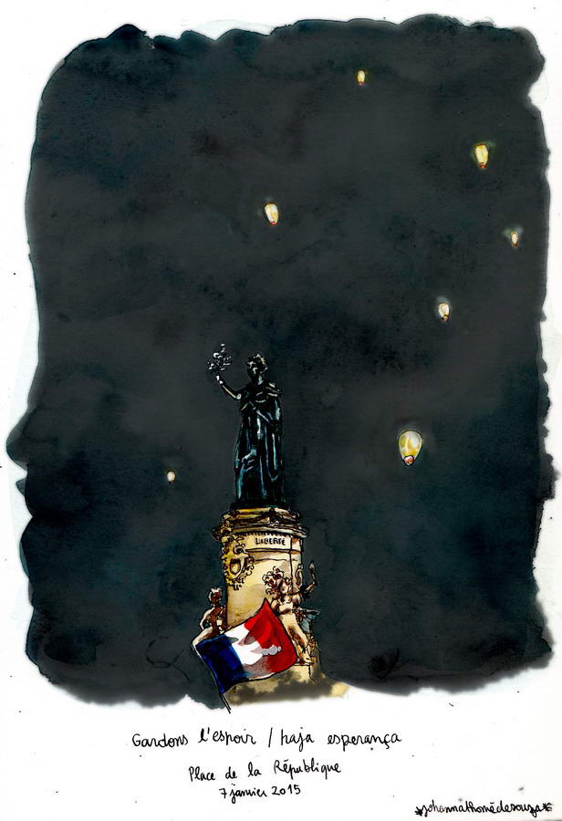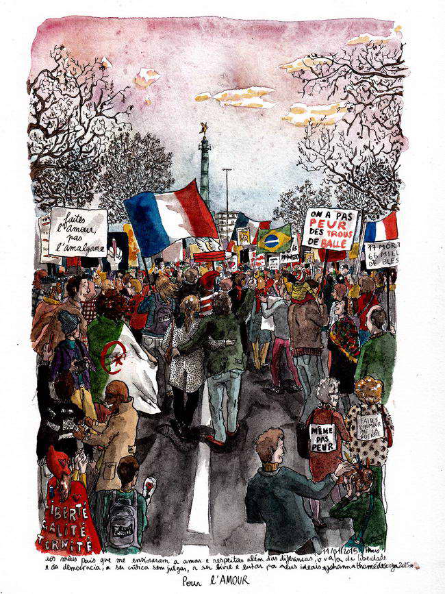 Et aussi le Corner Illustrateurs où on retrouve avec plaisir l’illustratrice franco-brésilienne Johanna Thomé de Souza avec des œuvres consacrées à la marche pour Charlie aussi bien qu’aux… glaciers d’Islande : un vrai contraste avec les images de cariocas exposées sur DDessin 14, mais toujours le même talent. A découvrir dans ce même corner, la « storyteller » montréalaise Is Loba (« louve » en espagnol) dont les voyages initiatiques  explorent en techniques mixtes la féminité sauvage de la Nature, en un éternel retour. Intriguant et enthousiasmant à la fois !