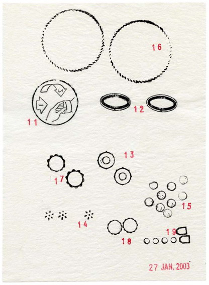 « Tous les éléments figuratifs dans mes œuvres proviennent d’une énorme base de données que j’ai bâtie en utilisant du papier calque pour copier des personnages, des objets, des animaux, des formes… En un sens, j’ai constitué une compagnie d’acteurs, avec leurs décors, que je peux utiliser selon les besoins de l’image. » explique Gianpaolo Pagni dans une interview à Elephant magazine (janvier 2010).