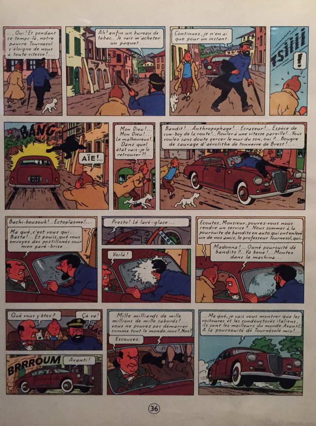 Ligne claire, mais précédée de crayonnés acharnés. Les brouillons de planches exposés montrent Hergé revenir sur son dessin, insister encore et encore jusqu’à parfois percer la feuille de son propre aveu… « Vous ne pouvez pas savoir à quel point c’est long et difficile : c’est un véritable travail manuel ! » avoue-t-il en 1971.
