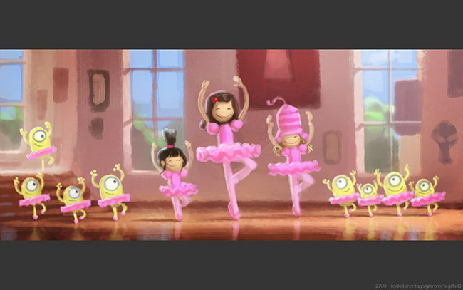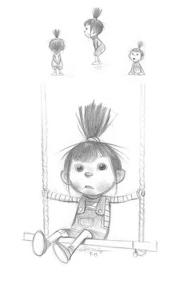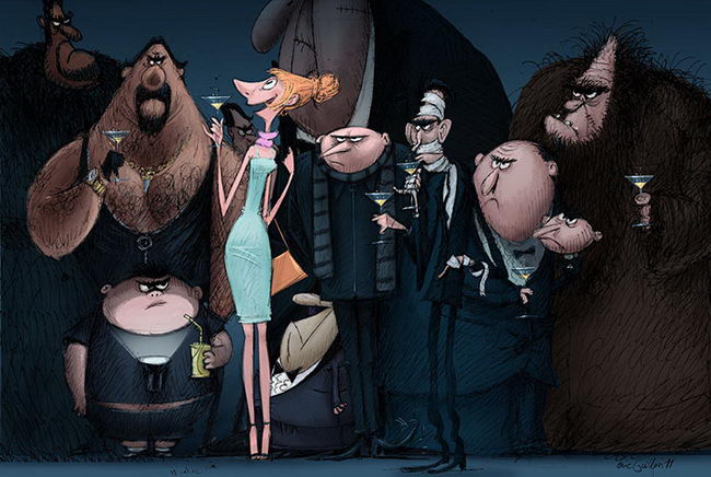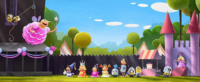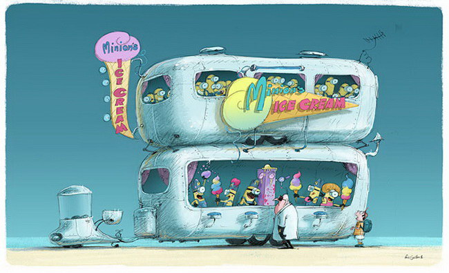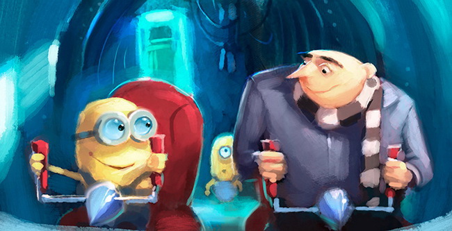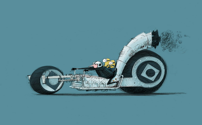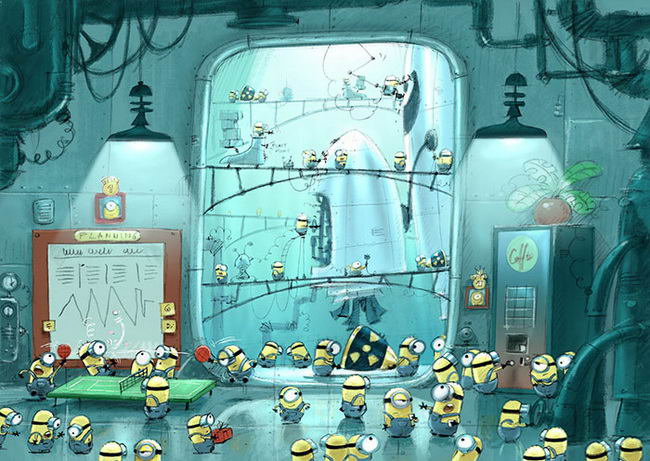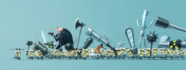 L’art department d’Illumination a été ainsi largement basé à Paris, comptant jusqu’à une quinzaine de personnes. Pas d’environnements grandioses dans Moi, Moche et Méchant, « l’art est là pour supporter la narration » rappelle Yarrow. L’univers est celui de tous les jours, avec par-dessous des caractéristiques un peu bizarres (les Minions, la cave atelier de Gru, etc.) pour nourrir l’histoire. Moi, Moche et Méchant 2 permettra de découvrir de nouveaux environnements : une base sous-marine, le repaire du méchant. Une réalité stylisée empreinte de clins d’œil et d’humour, avec des personnages attachants et sans côté trash.