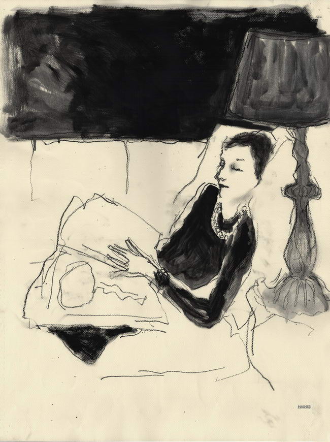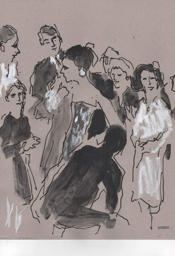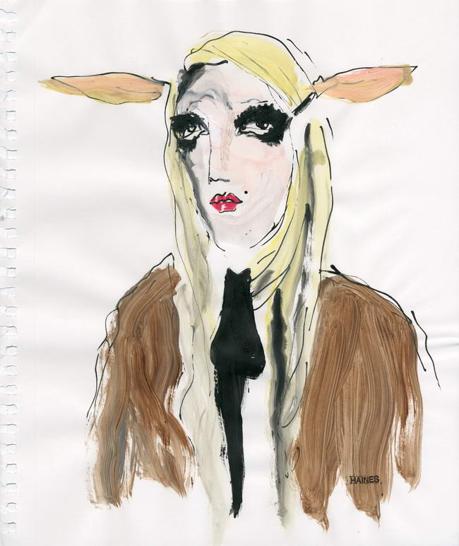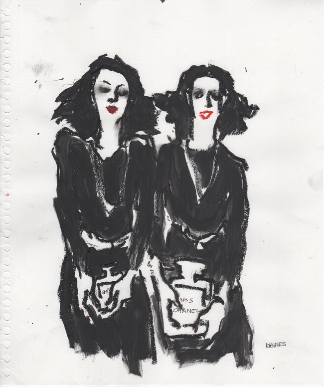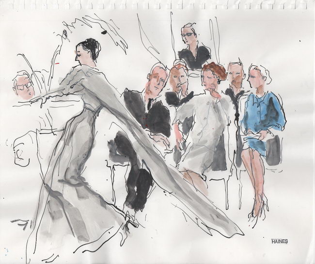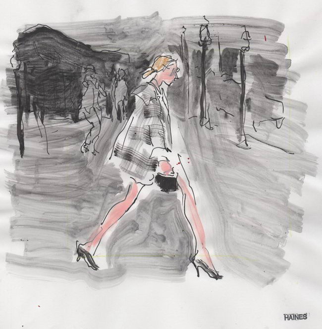 La finesse du trait, des ambiances douces caractérisent ses croquis où alternent célébrités et voisins de quartier: working girl pressée, la journaliste hystérique, le top model ultra looké, la vieille dame et son chien ou encore une rock star délurée comme la « Brooklyn Drag Queen » Patti Spliff… Des rues de Brooklyn au front row des défilés, Richard Haines saisit sur ses carnets les tendances et l’air du temps. Et la galerie Huberty & Breyne saisit de même l’occasion de la semaine de la mode à Paris pour présenter une quarantaine de dessins de Richard haines, jusqu’au 6 février 2016 en sa galerie parisienne.