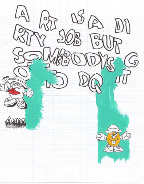 Du côté de Véronique Augry, ce sont les portraits grimaçants d'enfants ("les siens !", précise Stéphanie Mercier) qui sont exposés. L'illustratrice montre aussi ce qu'elle appelle ses "Petits Ecoliers", des dessins humoristiques, un peu sardoniques, dessinés sur du papier quadrillé scolaire.