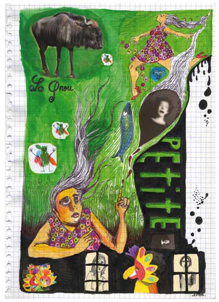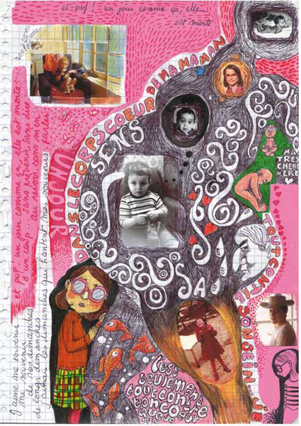 "Mes créations, réalisées spécialement pour l'exposition, sont différentes de celles que je publie sur mon blog. Là, ce sont essentiellement des autoportraits, des dessins de ma famille, de moi enfant. J'ai travaillé au Bic puis avec des collages, tout cela est venu spontanément, sans préméditation", explique Stéphanie Mercier.