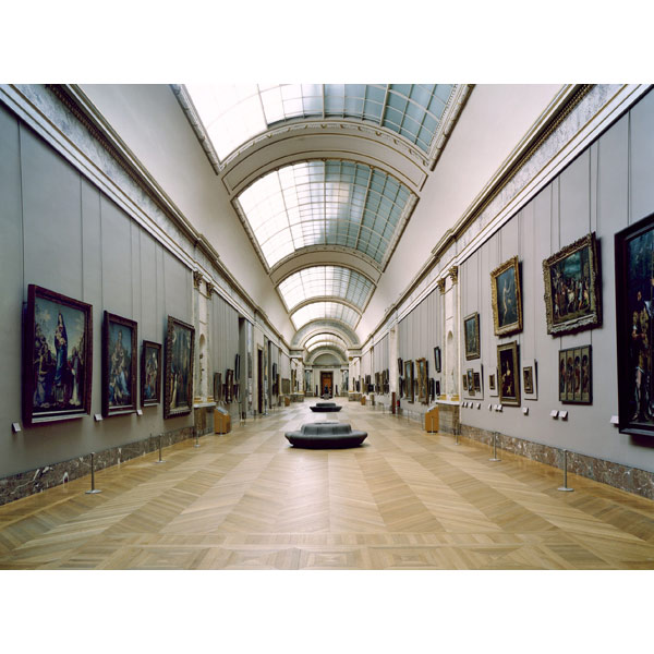Qui n’a jamais prononcé entre ses dents, lors d’un jour d’affluence, le vœu de voir le Musée du Louvre déserté ? C’est en quelque sorte ce qu’a exaucé l’artiste Candida Höfer, à travers d’imposants cibachromes, où les salles habituellement engorgées d’adeptes de l’art, se transforment cette fois, en espaces inquiétants, délibérément privés de présence humaine.